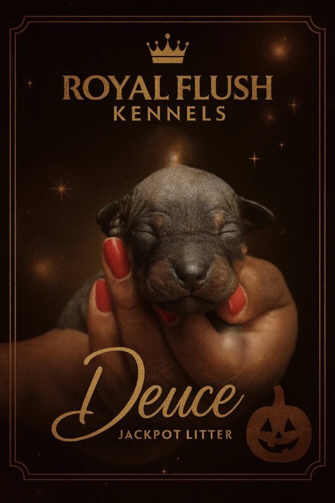 5. Pay the remaining puppy price when your puppy is ready to leave us. All payments must clear 48hrs before leaving us. You will receive a booklet with important information, including lineage, vaccination records, health certificate, and training tips. Welcome to the Royal Flush Family! Stay connected with us through Instagram and Facebook for puppy families. Contact us anytime for support or updates.